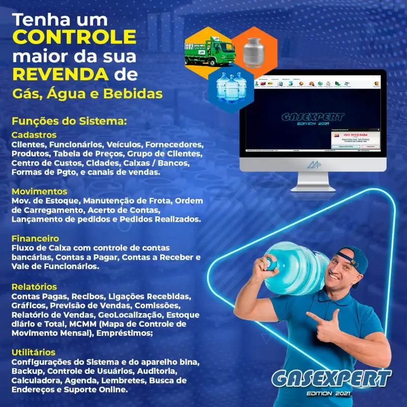 Com recursos específicos para revendas de Disk Gás e Água…